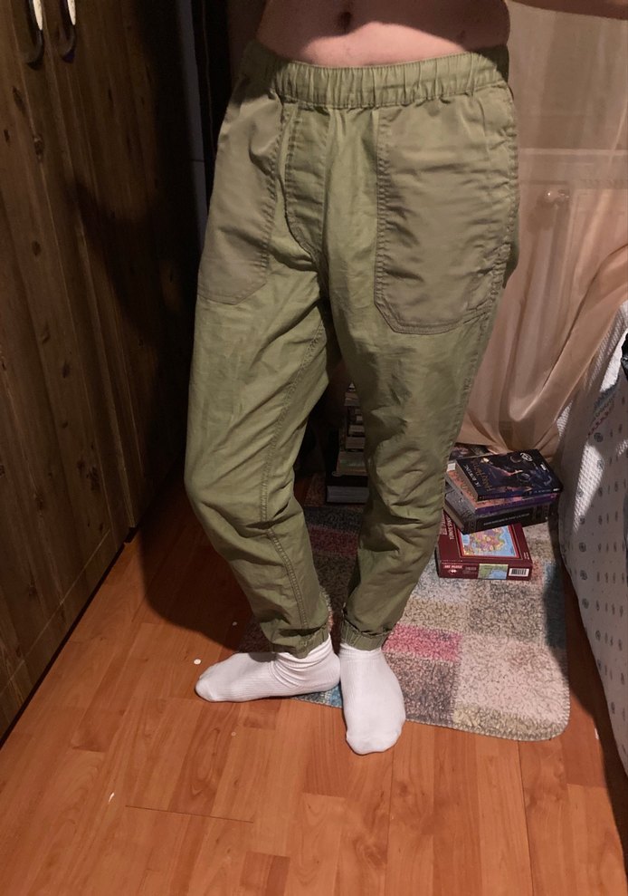 Erkek için haki renk jogger, rahat kesim midi boy pantolon. Elastik bel ve cepler içerir, desensiz ve günlük rahat şıklık sağlar.