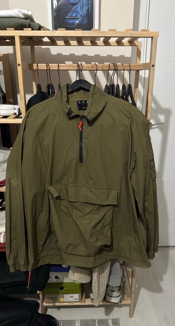 Erkekler için haki renkte, kemer detaylı, geniş kesim midi boy yağmurluk. Uzun kollu ve yakası notalı, günlük sokak stili için uygun.