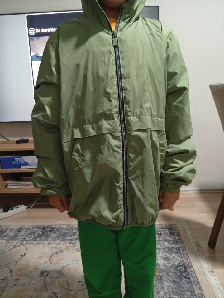 Erkekler için haki renkli, fermuarlı ve notched lapel yakalı bol kesim midi uzunluğunda yağmurluk. Yumuşak kumaştan, günlük kullanıma uygun. ️