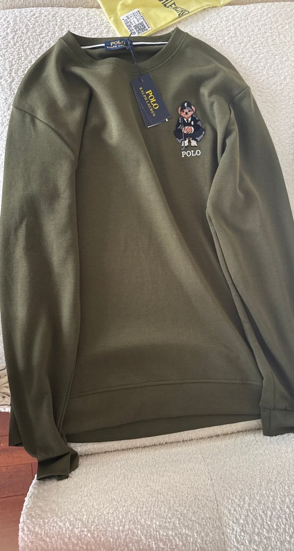 Erkek sweatshirt, yuvarlak yaka ve uzun kollu, bol kesimdir. Yumuşak ve sıcak kumaştan üretilmiş koyu haki renkte, fermuarlı ve Polo baskılıdır. Günlük kullanıma uygundur.