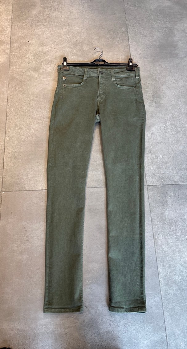 Erkekler için regular fit, midi boy ve yumuşak denim kumaştan yapılmış haki renkte pantolon. Sokak stili ve zahmetsiz şıklık sunar, günlük kullanıma uygundur.
