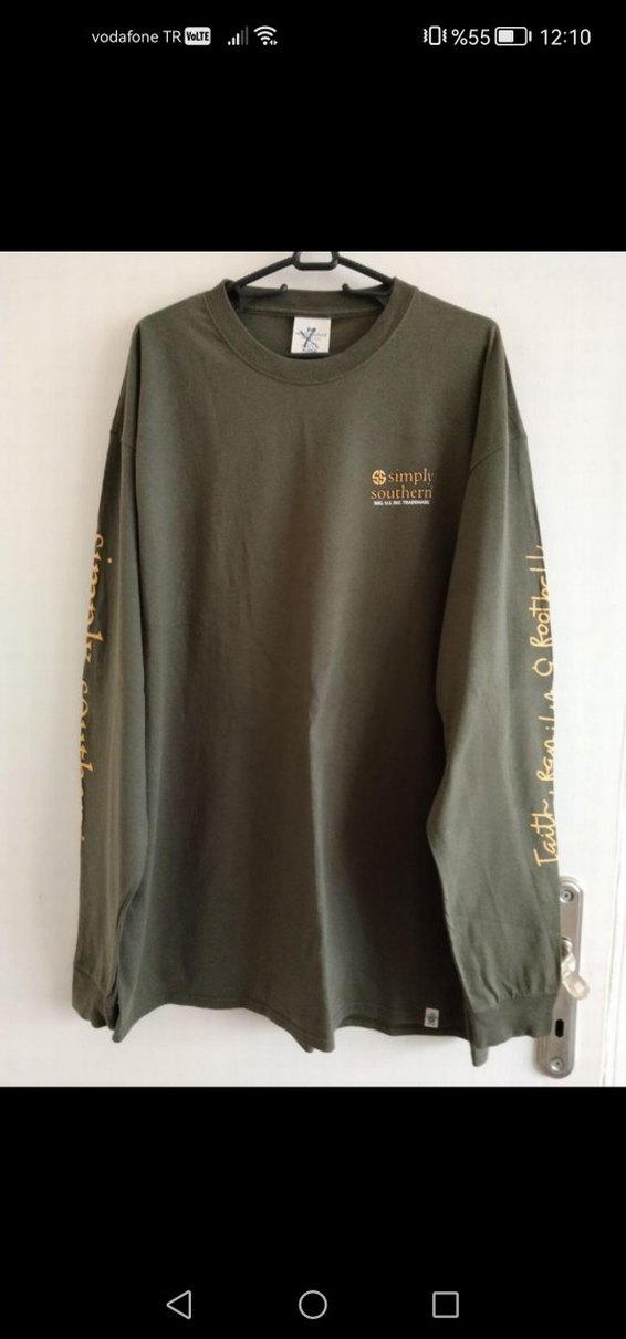 Erkekler için haki renkli, uzun kollu ve bisiklet yaka sweatshirt. Göğüs ve kollarda baskılı detaylar bulunur. Rahat kalıp ve yumuşak sentetik kumaş kullanılmıştır. En 60 boy 78 cm dir