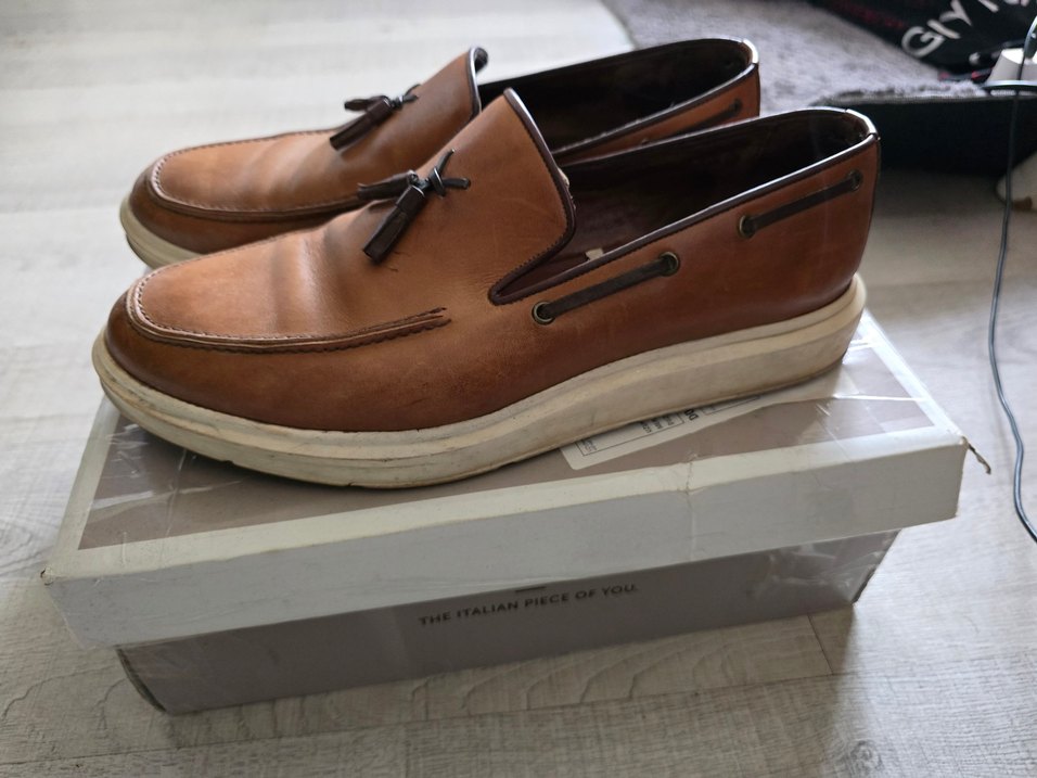 ERKEK LOAFER DERİ AYAKKABI.%100 DANA DERİSİDİR.İKİ ÜÇ DEFA GİYILMİŞTİR.ÇOK ŞIK BİR DURUŞU VARDIR.ALANA ŞİMDİDEN HAYIRLI OLSUN.ÜRÜNÜN HİÇBİR SORUNU YOKTUR ONA GÖRE ALIM YAPIN LÜTFEN İADE KABUL ETMİYORUM.