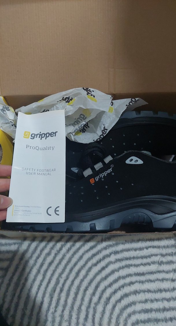 Siyah renkli, gripper markalı hiç kullanılmamış, kutulu, demir uçlu iş ayakkabısı
