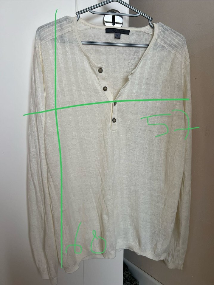 57 cm kol arası 68 cm boy 1 kere giyildi kuru temizleme yapıldı 100% keten yeni durumda