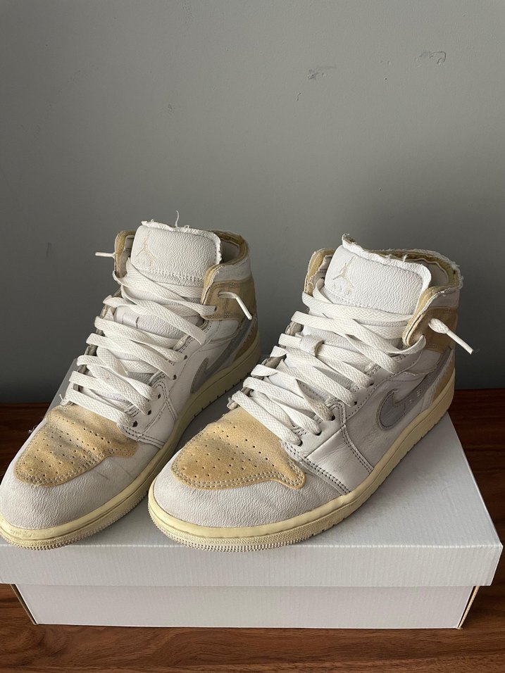Beyaz, desensiz erkek sneakerlar, kauçuk tabanlı, spor ve sokak stili ile athleisure rahatlığını birleştirir. Zahmetsiz şıklık ve trend görünüme sahip. ayakkabinin uzerinde ufak lekesi var onun disinda sorunsuz 41 numara jordan