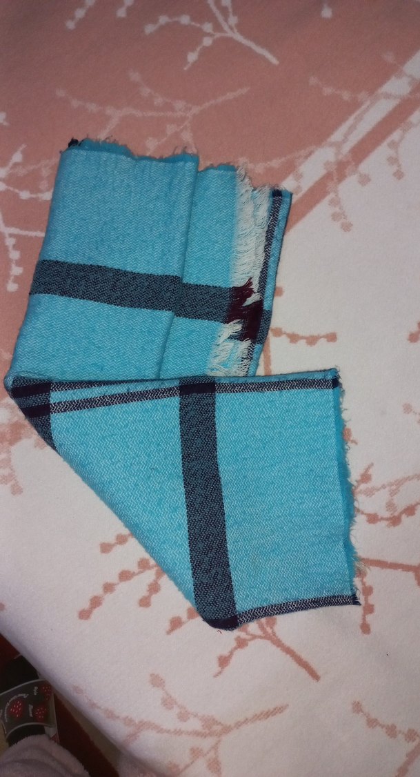 Erkek-Kadın Mavi Uzun Bağlama Desenli Atkı