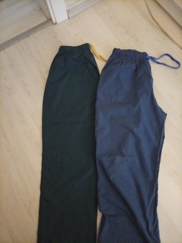 mavi ve yeşil sağlık içi pantolonu keten kumaşı lastikli. M l beden sağlık çalışanları için uygundur