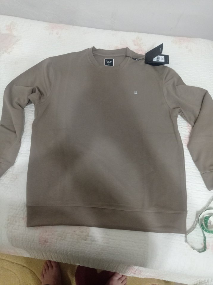 Erkekler için kahverengi bisiklet yaka, uzun kollu sweatshirt. Yumuşak ve sıcak kumaştan, rahat kesim ve normal boyda. Günlük kullanım için sade ve şık bir tasarım.