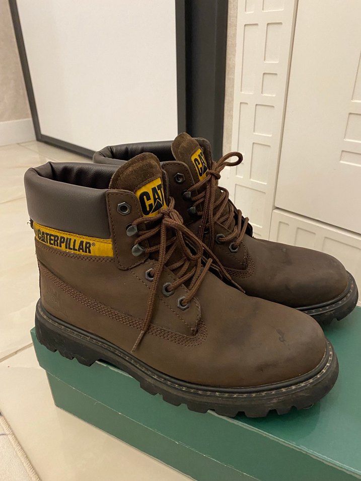 Erkek Kahverengi Deri Caterpillar Botlar