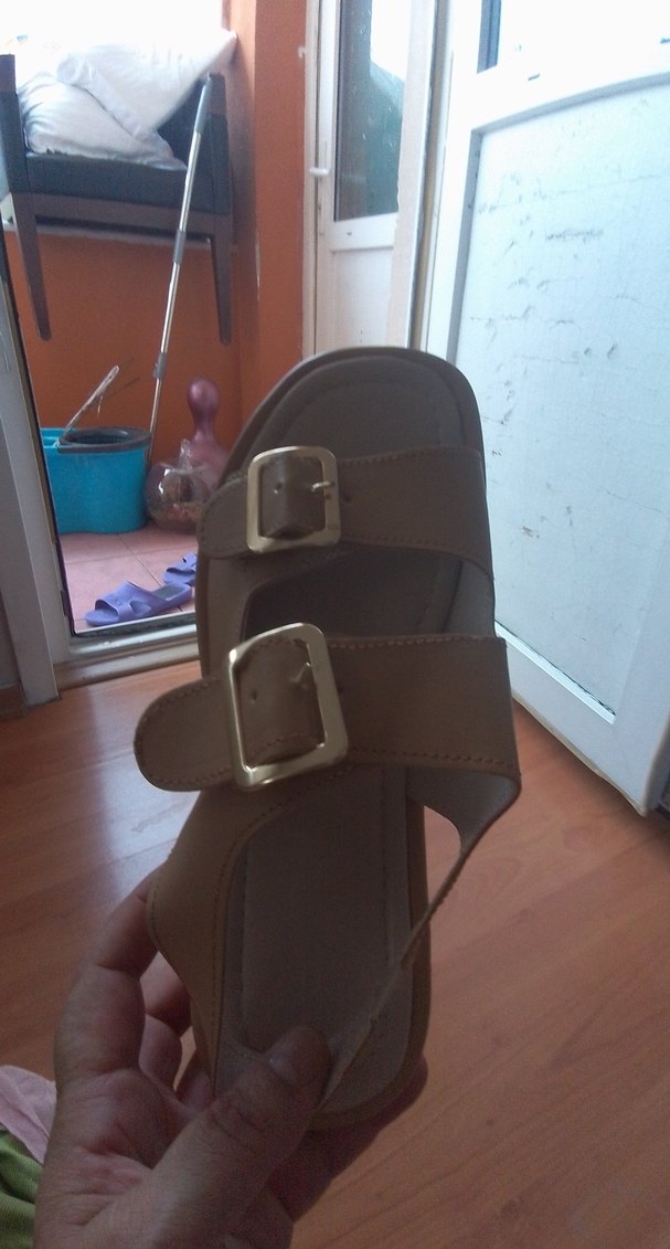 Kahverengi deri erkek sandalet, iki ayarlanabilir tokası ile minimalist tasarıma sahip. Günlük rahat ve şık sokak stili için uygundur.