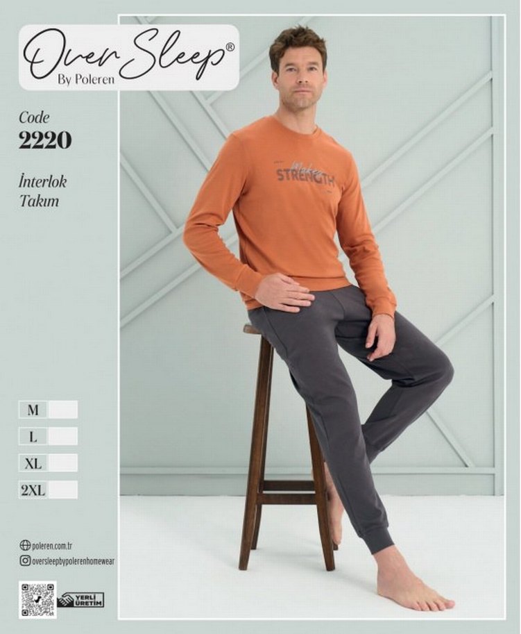 Erkek Kahverengi Gri Uzun Kollu Pijama Takımı