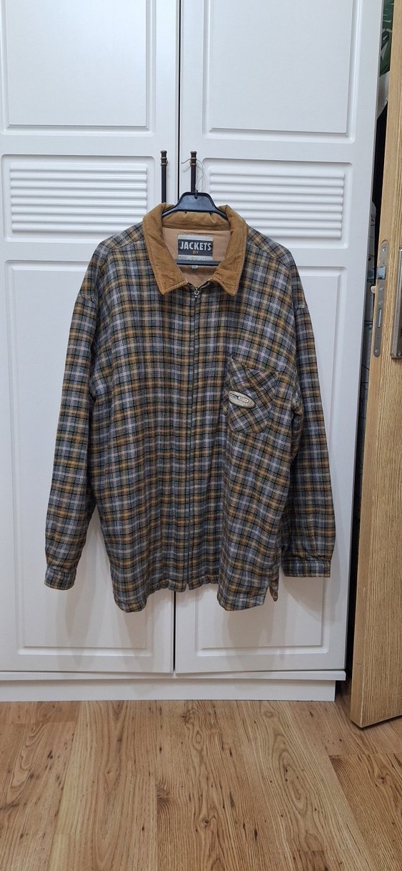Uzun kollu, fermuarlı bol kesim erkek ceketiYumuşak ve sıcak kahverengi kareli kumaştan, günlük rahat kullanım için uygundur. fermuarın sapı kopmuştur