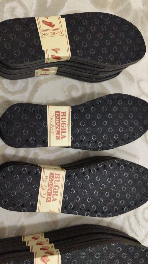 Kahverengi kauçuk erkek terlik tabanlık, baskılı desenli ve Velcro özellikli, günlük kullanım için uygundur. Farklı numaralarda mevcuttur.
