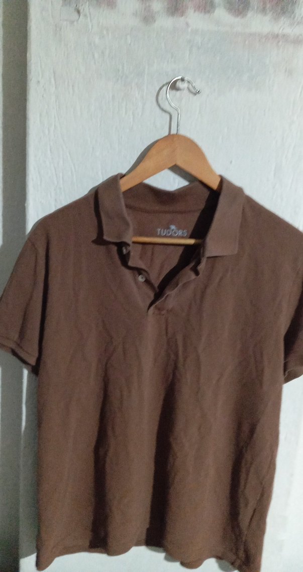 Keten kumaştan yapılmış, yakalı ve kısa kollu erkek kahverengi polo tişört. Rahat kesimi ve sade tasarımıyla günlük sokak giyimi için uygundur.
