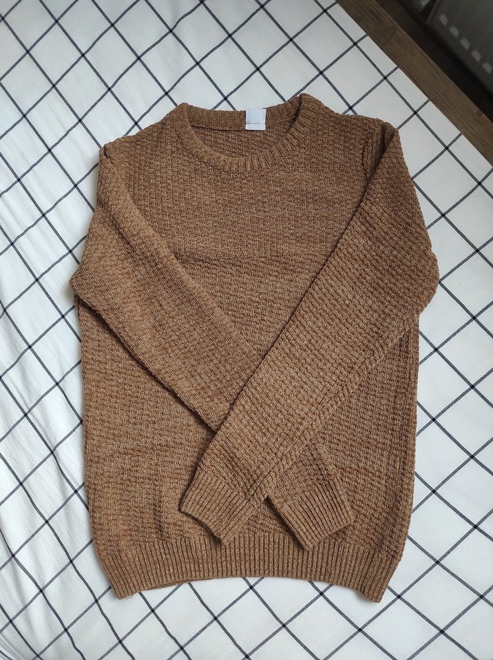 Kahverengi, örgü kumaştan üretilmiş, bisiklet yaka ve uzun kollu, düz ve normcore tarzda, regular fit erkek kazak. Esneyen kumaş yapısına sahip genişleyen kazak. Boy : 65 / Genişlik : 50 cm / Beden : S