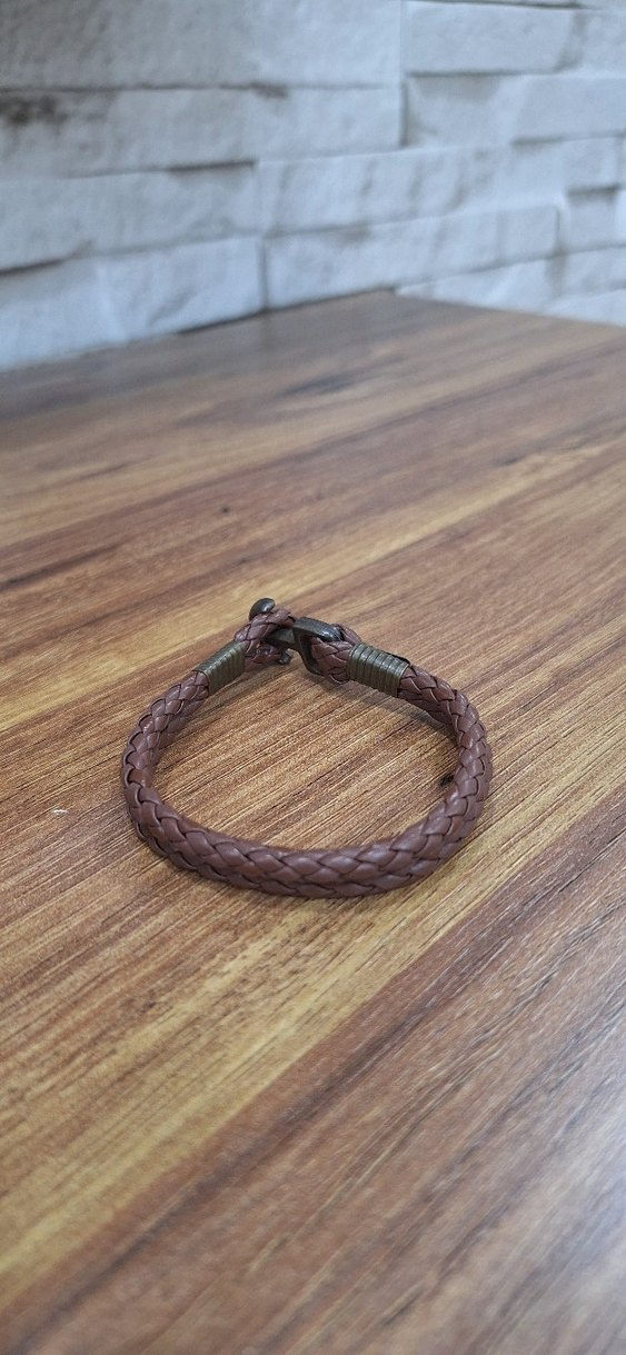 Erkekler için kahverengi örgülü deri bileklik, metal toka ile sade ve vintage bir tarz sunar.
