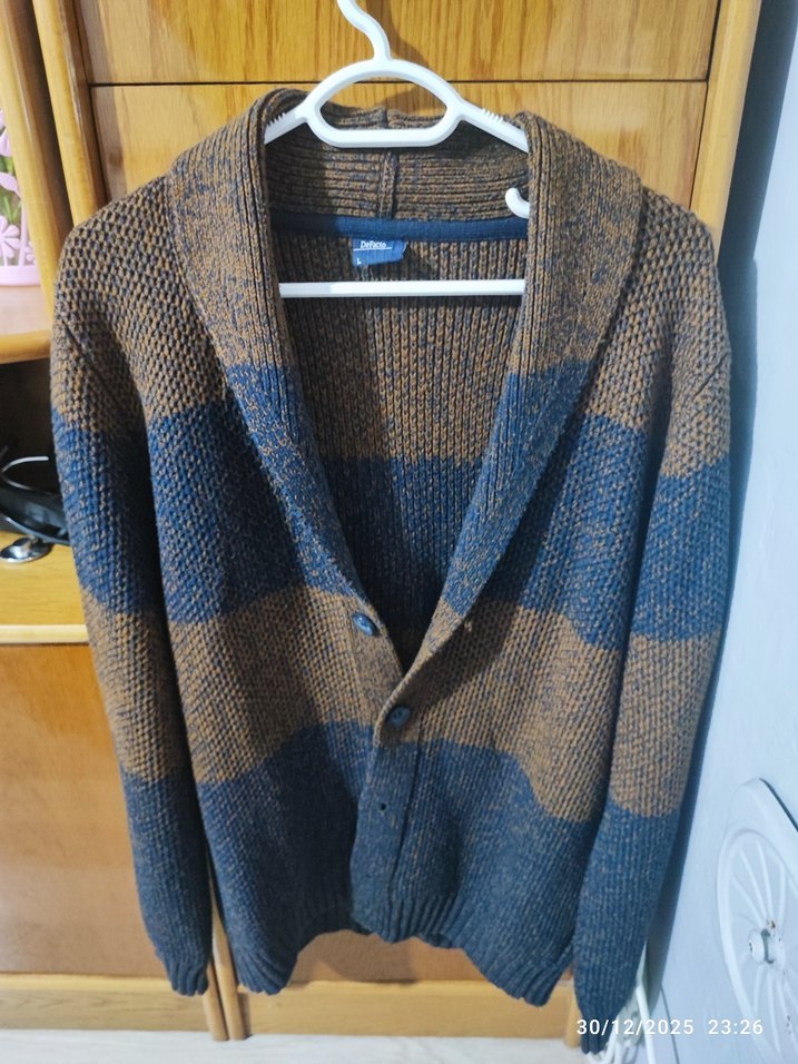 Yünlü, kahverengi tonlarda örgülü, notched lapel yaka ve uzun kolludur. Regular fit ve normal boyda, klasik tarz hırkadır. Kolay kolay bozulmaz 7-8 yıldır bende duruyor yıkanmasına rağmen tüğ biriktirmedi, birikenleri makineyle temizledim. Bu zamanda bu kalitede yünlü hırka bulmanız gerçekten zor.