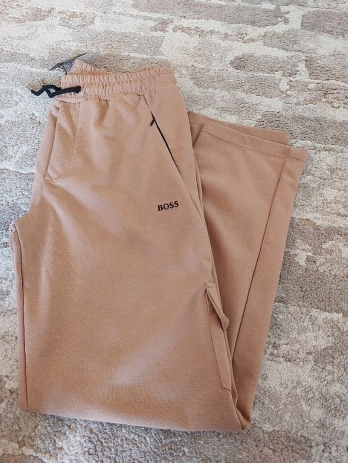 kahverengi eşofman altı, bol kesim ve fermuarlı ceplere sahiptir. Günlük rahat kullanıma uygundur. Pastel tonu genç ve sokak stiline uygundur. ve BOSS markası baskılıdır. ️