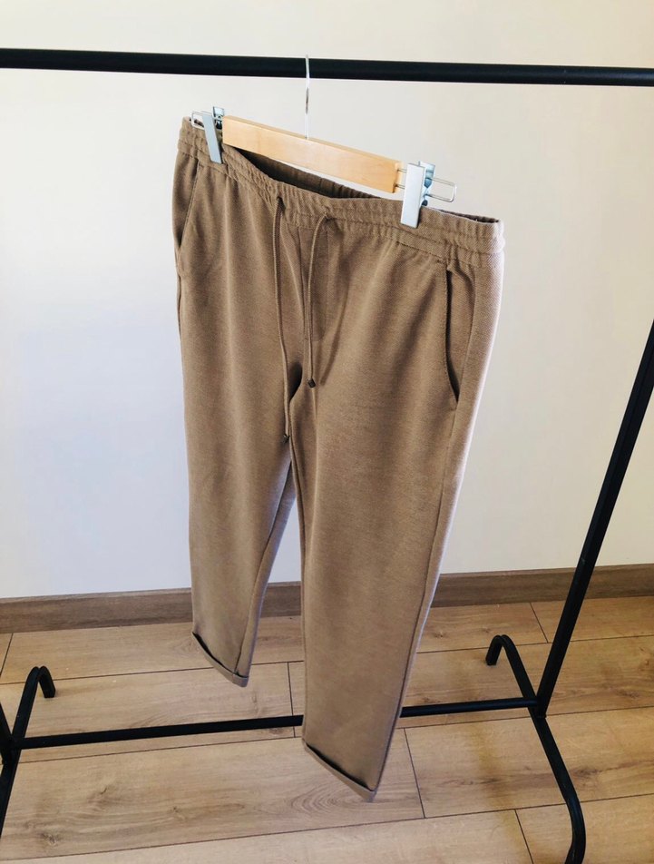 Erkekler için kahverengi , kemerli ve cep detaylı, midi boy rahat kesim pantolon.
