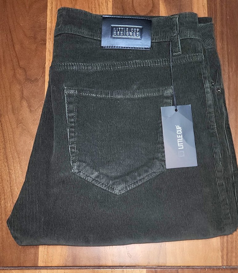 Düğmeli, kahverengi kadife kumaştan yapılmış erkek regular fit pantolon. Normal midi boyda, desen içermeyen sokak stili için uygun. Marka: Little Cup.