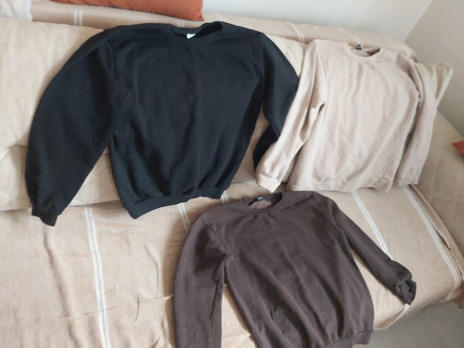 Erkekler yada kızlar için yuvarlak yaka ve uzun kollu, yumuşak ve sıcak kumaştan yapılmış, bol kesim kahverengi sweatshirt. Günlük kullanıma uygun rahat model.