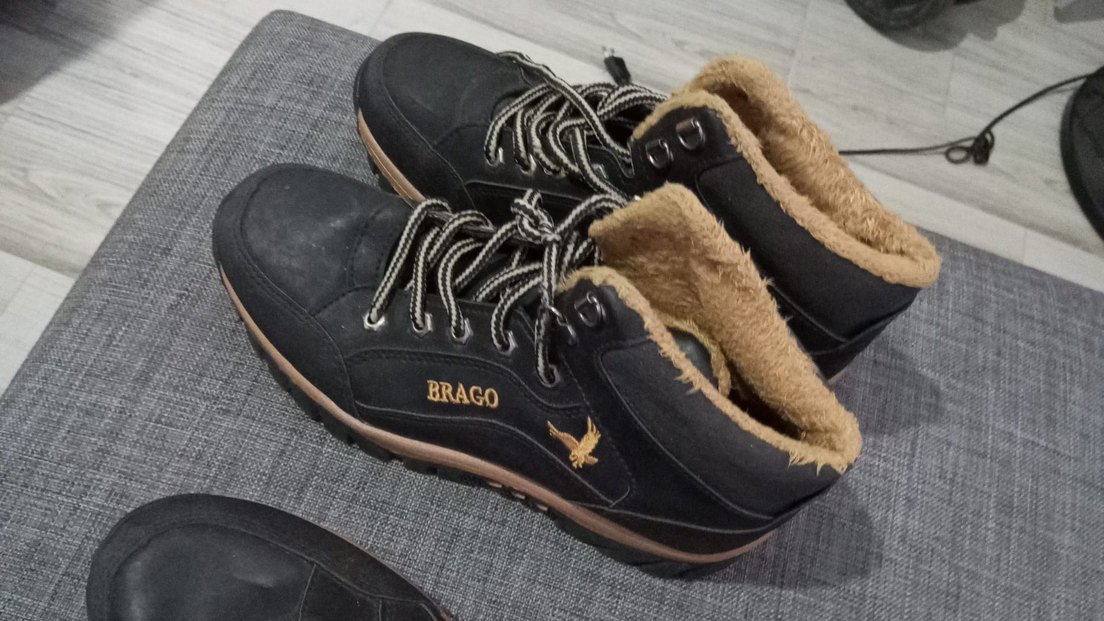 Erkekler için koyu kahverengi süet, baskılı ve bağcıklı, içi sıcak tutan astarlı günlük ve sokak stili sneakers. "BRAGO" markalı.