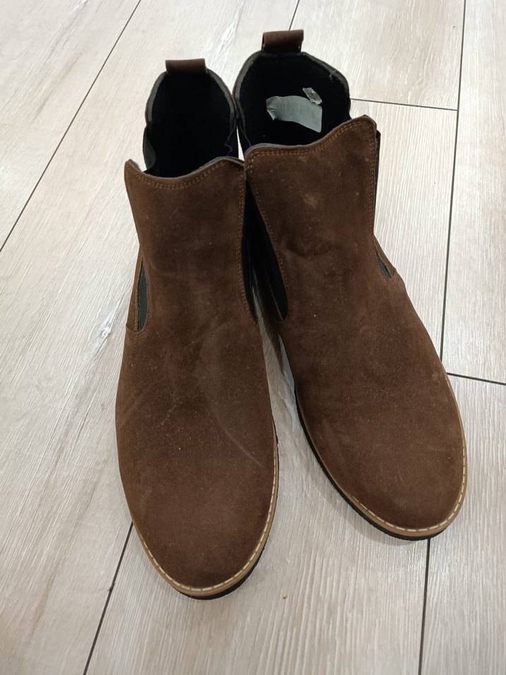 Kahverengi süet malzemeden yapılmış, tokalı erkek botları. Minimalist ve sokak tarzına uygun, günlük kullanım için rahat ve şık.