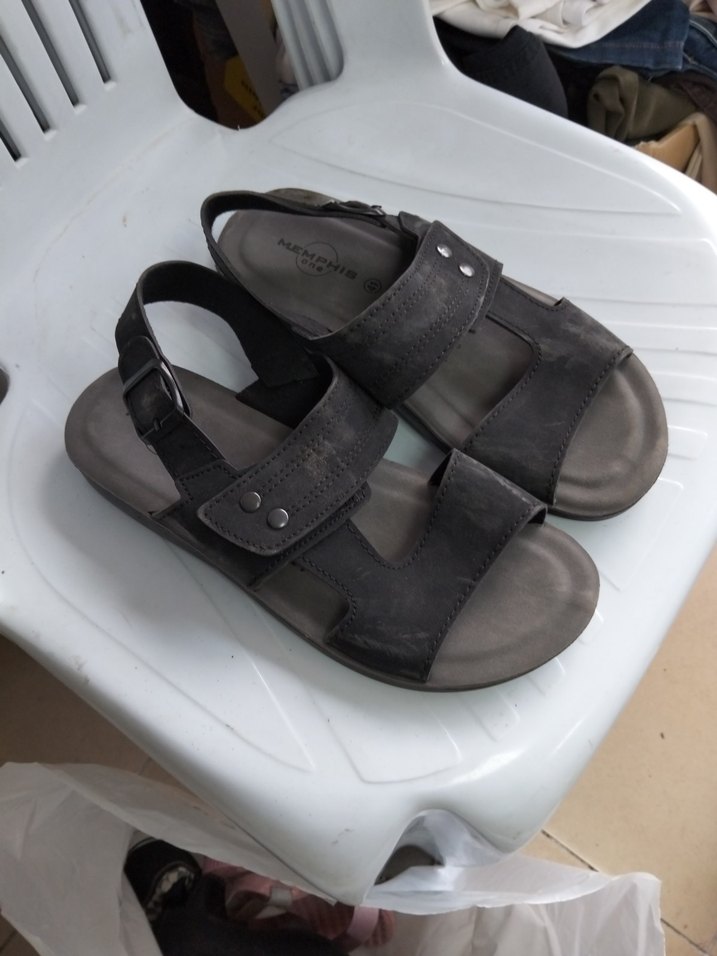 Erkekler için tokalı, kahverengi-gri renkte, kauçuk tabanlı ve desen içermeyen minimalist sandaletler. Günlük kullanıma uygundur.