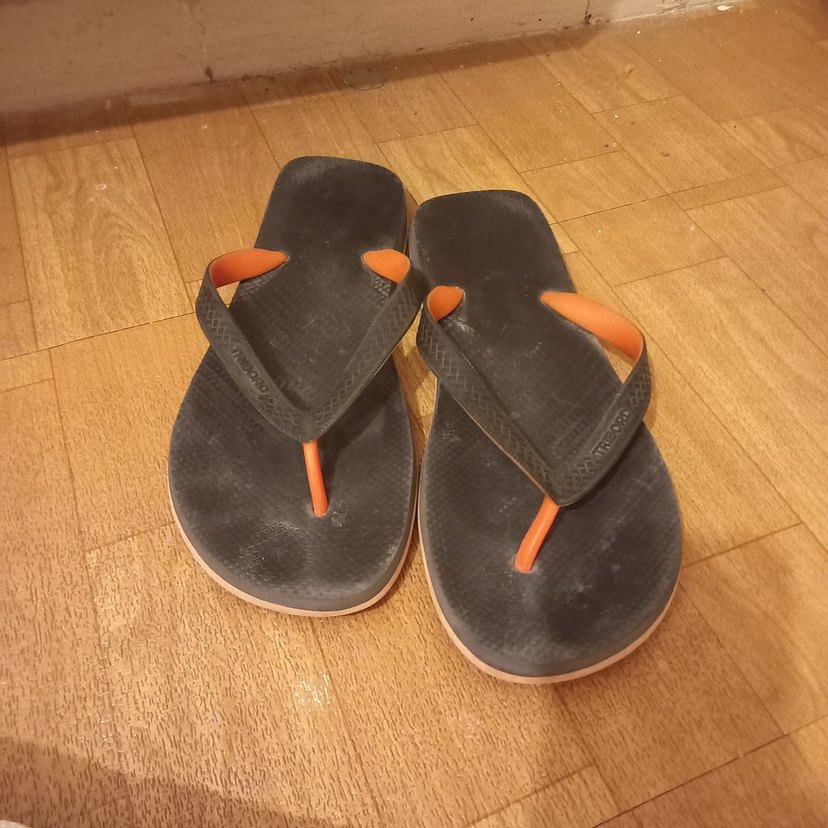 Erkekler için tokalı, kauçuk tabanlı kahverengi terlik. Minimalist ve sade tarzıyla günlük kullanıma uygundur. Gri ve turuncu detaylar bulunur. tabanı 39 santim 42 beden