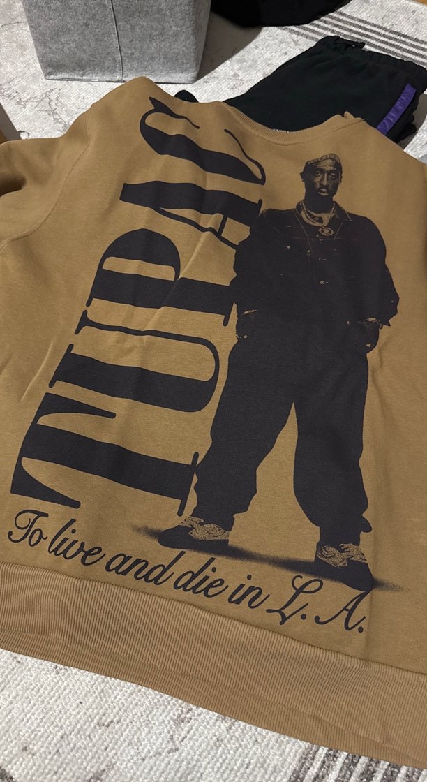 Erkek Kahverengi Tupac Baskılı Sweatshirt