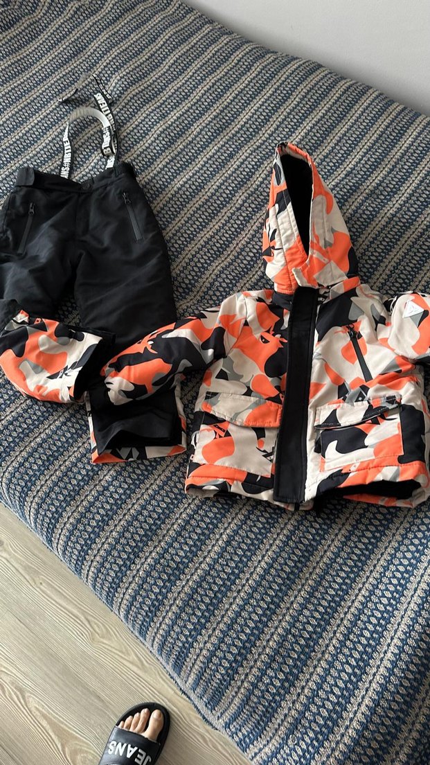 Erkekler için kamuflaj desenli, kapüşonlu ve cırt cırtlı fitted ceket ile siyah askılı pantolon kar takımı çok iyi durumda az kullanılmıştır. (2-5 yaş arası) erkek çocuk