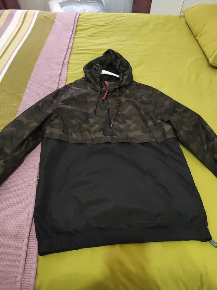 Erkekler için kamuflaj desenli, kapüşonlu kanguru. Yüksek yakalı, uzun kollu ve fermuarlı. Rahat ve bol kesim, dış mekan kullanımı için uygun.