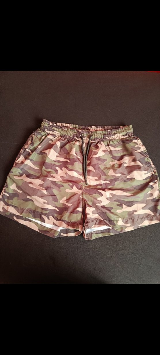 Hafif kahverengi kamuflaj desenli, bol kesim mini şort. Elastik bel ve bağcıklı.