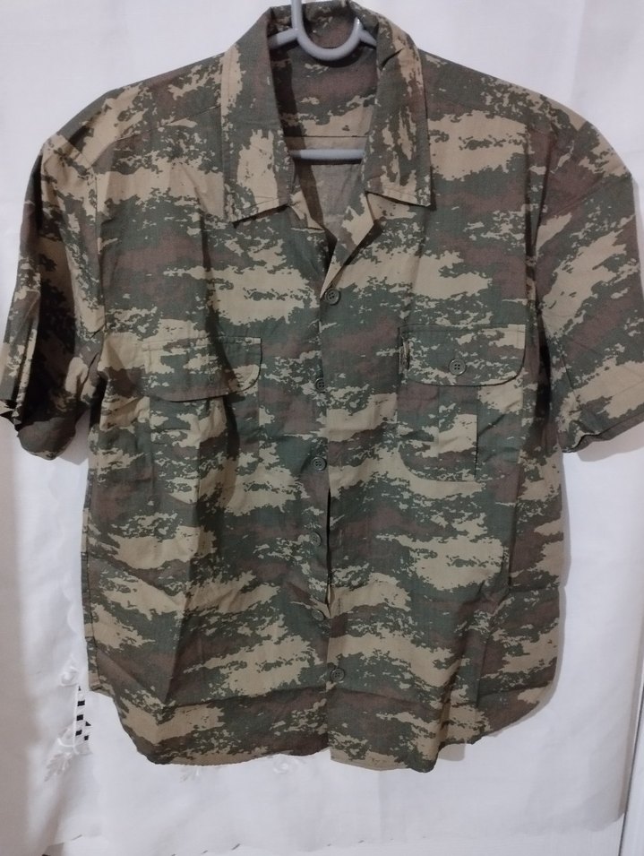 Türk Silahlı Kuvvetleri kamuflaj desenine sahip, %100 pamuk, kısa kollu askeri tarz gömlek. Açık ve koyu kahverengi ile yeşilin doğal tonlarından oluşan klasik TSK kamuflaj deseni sayesinde hem dayanıklı hem de zamansız bir görünüme sahiptir. Klasik yakalı, önü düğmeli modeldir. ️ Ön kısımda iki adet kapaklı ve düğmeli göğüs cebi bulunur. Askeri kullanım standartlarına uygun, tok ve sağlam kumaş yapısına sahiptir. ️ Outdoor aktiviteler, kamp, doğa yürüyüşleri, avcılık veya günlük askeri stil kombinleri için idealdir. Etiket bilgilerinde KİLİM DIŞ TİCARET VE PAZARLAMA üretimi olduğu ve 2007 tarihli askeri tedarik ürünü olduğu görülmektedir. Koleksiyonluk değeri olan, bulunması zor parçalardandır. %100 pamuk – yazlık ve nefes alabilen kumaş. Askeri stil sevenler ve koleksiyonerler için özel bir üründür.