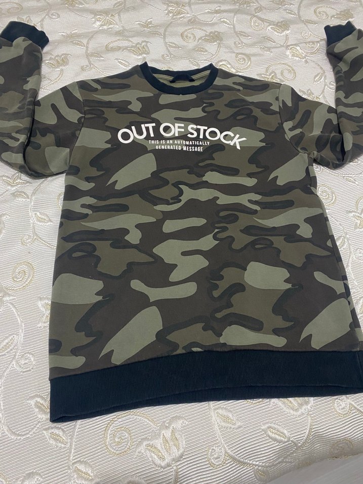 Khaki kamuflaj desenli, oversize kesim erkek sweatshirt. Uzun kollu, yuvarlak yakalı ve sentetik kumaştan. Rahat ve şık, outdoor kullanıma uygun.