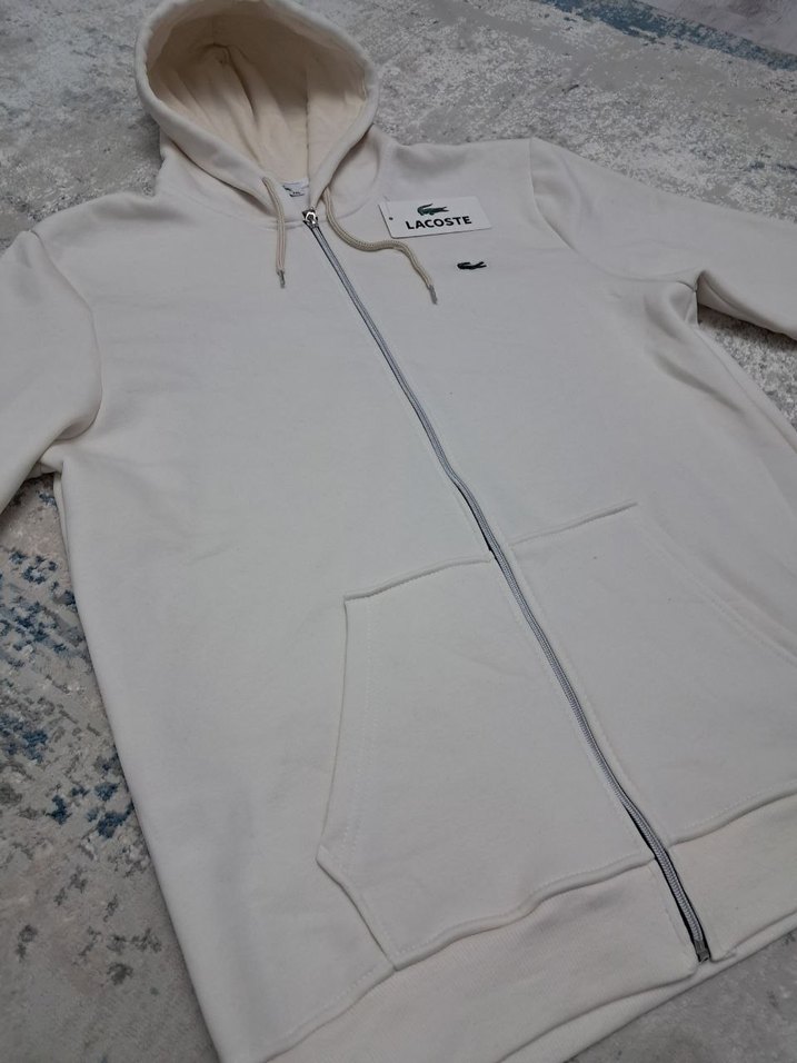 KREM LACOSTE KAPŞONLU 3 İPLİK SWEAT TAM FERMUAR MÜKEMMEL KALİTE NORMAL KALIP PAMUKLU ÜRÜN