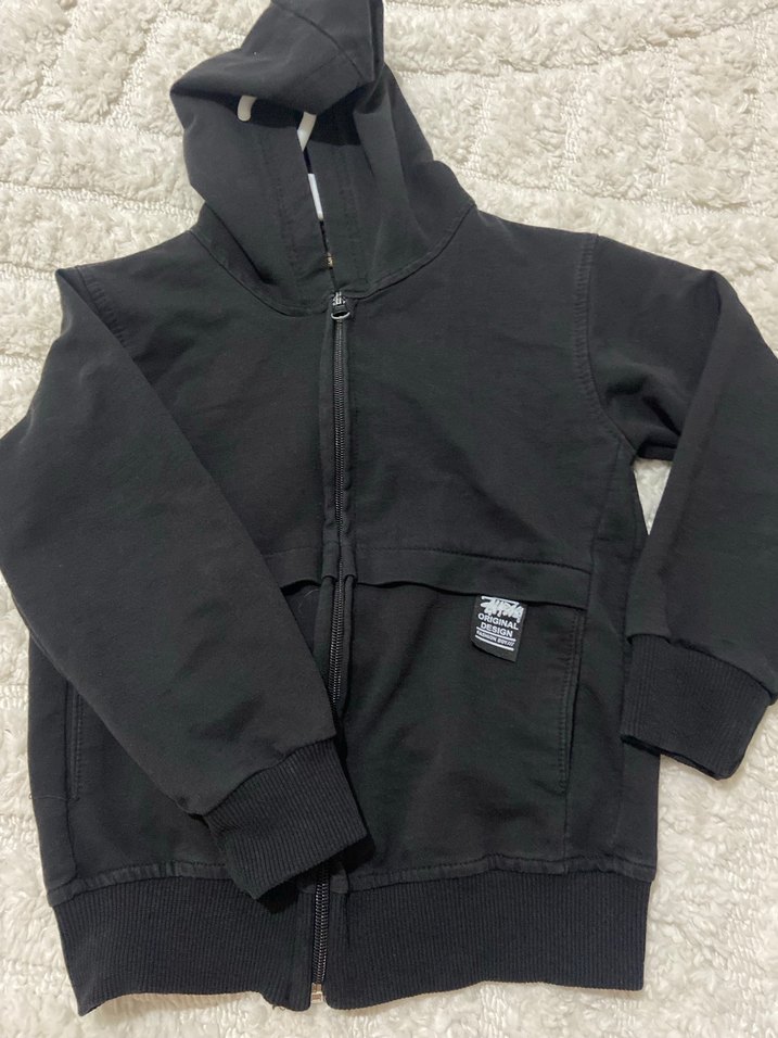 Siyah renkli, kapüşonlu ve fermuarlı erkek çocuk sweatshirtü. Yumuşak ve sıcak kumaştan, bol kesim ve uzun kolludur. Sokak tarzı için uygundur.