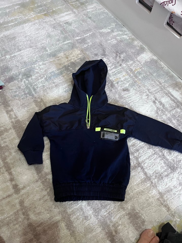 Erkekler için kapüşonlu, uzun kollu ve bol kesim lacivert sweatshirt. Yumuşak ve sıcak kumaştan üretilmiş, fermuarlı detay içerir.
