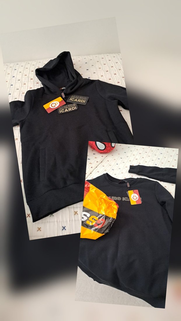 Erkek siyah sweatshirt, kapüşonlu ve uzun kolludur. Yumuşak kumaştan yapılmış, baskılı ve fermuarlı detaylara sahiptir. Rahat kesimiyle günlük kullanıma uygundur. orjinal ürün biri 9.10 biri 10 .11 yaş