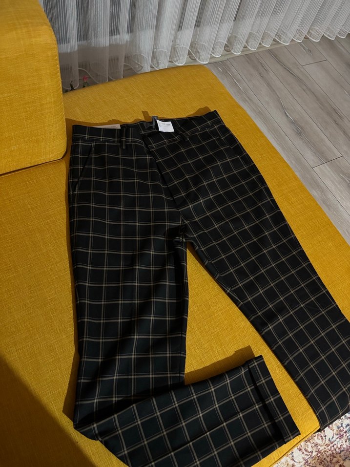 Erkek için kareli desenli, tokalı kumaş pantolon. Normal boyda, rahat kesim ve günlük kullanıma uygun, şık ve rahat tarzda.
