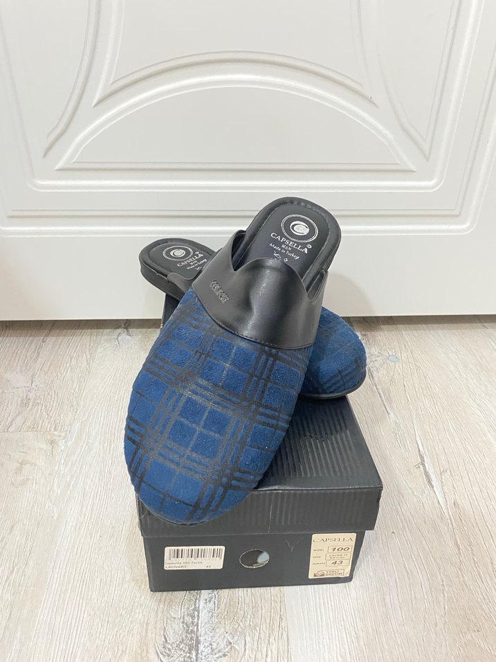 Erkek terlikleri, koyu mavi kareli desen sert tabanlı rahat kalıp . Çeyiz için alındı hiç kullanılmadı sıfır ürün