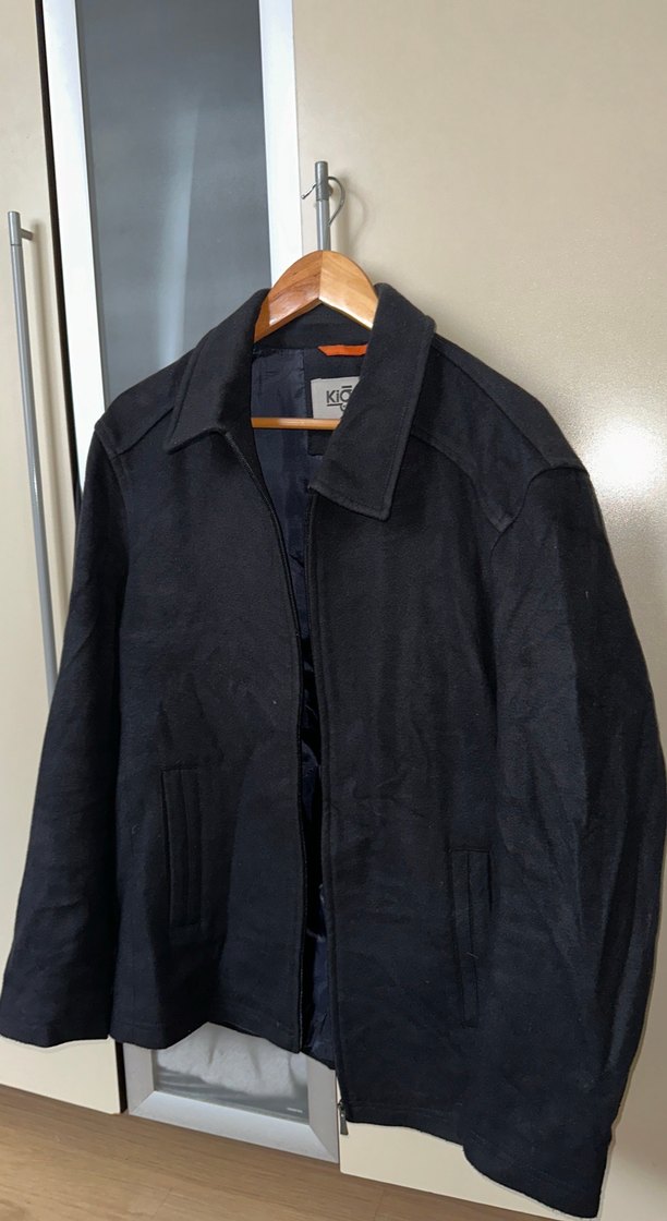 Kiğılı Siyah kaşe erkek ceketi, düğmeli ve kesik yaka detaylıdır. Normal midi boyda, uzun kollu ve rahat kesimdir, günlük kullanıma uygundur.