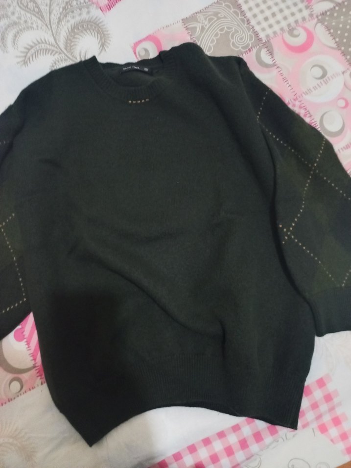 Siyah renkli, örme kumaştan yapılmış, yuvarlak yaka ve uzun kollu, salaş kesim midi uzunlukta kadın kazak. Rahat ve günlük kullanıma uygun.