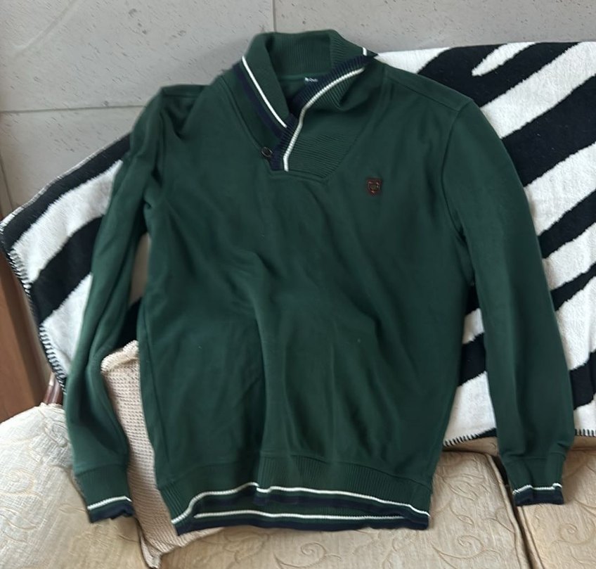Düğmeli detaylı, koyu yeşil erkek kazak