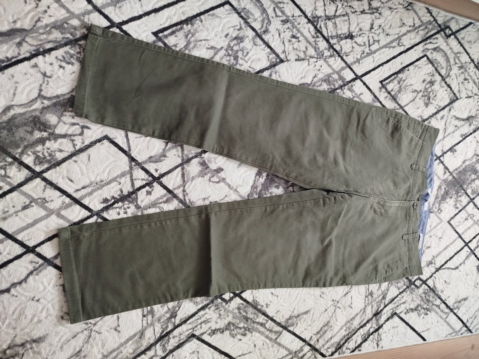 Erkekler için regular fit, kemerli, sentetik kumaştan yapılmış haki renk pantolon. Sokak stili ve normal boyda, açık hava kullanımı için uygun.