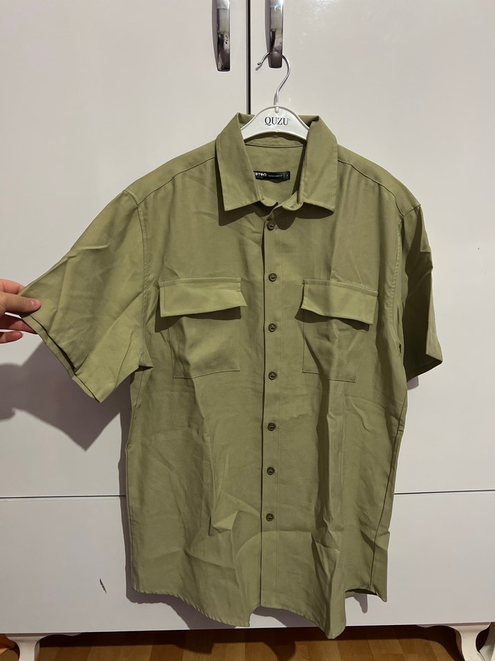 Hiç giyilmedi. Çok beğenerek almıştım ama eşim rengini beğenmedi maalesef o yüzden satıyorum. En: 56cm Boy: 72cm erkek gömlektir. Etiketi S ama M beden için de uyumlu rahat olacaktır . Görselde olduğu gibidir. Etiketi mevcut değil ama yenidir. düğmeli ve iki cep detaylı, bol kesim haki keten gömlek. Rahat ve günlük sokak stili için uygundur.