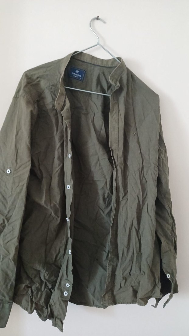 Erkek keten gömlek, bol kesim, yakası çıtçıtlı, düğmeli, uzun kollu ve normal midi boydadır. Sokak tarzı için uygun, keten kumaştan yapılmıştır.