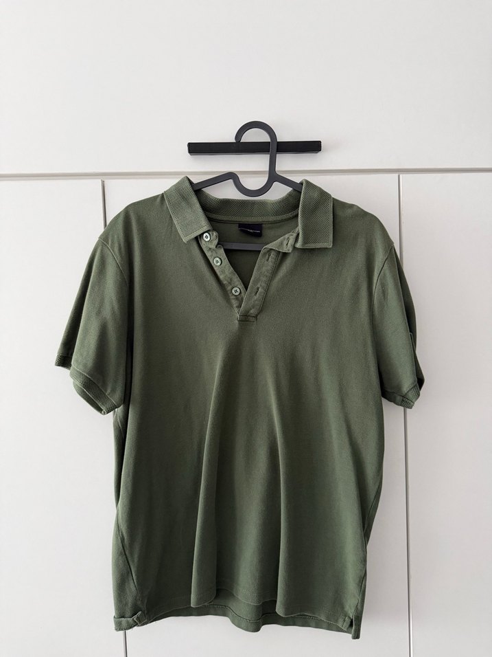 Erkek keten kumaştan, polo yaka ve kısa kollu, loose fit kesimde midi boy tişört. Khaki renkte, rahat ve şık günlük kullanım için uygun.