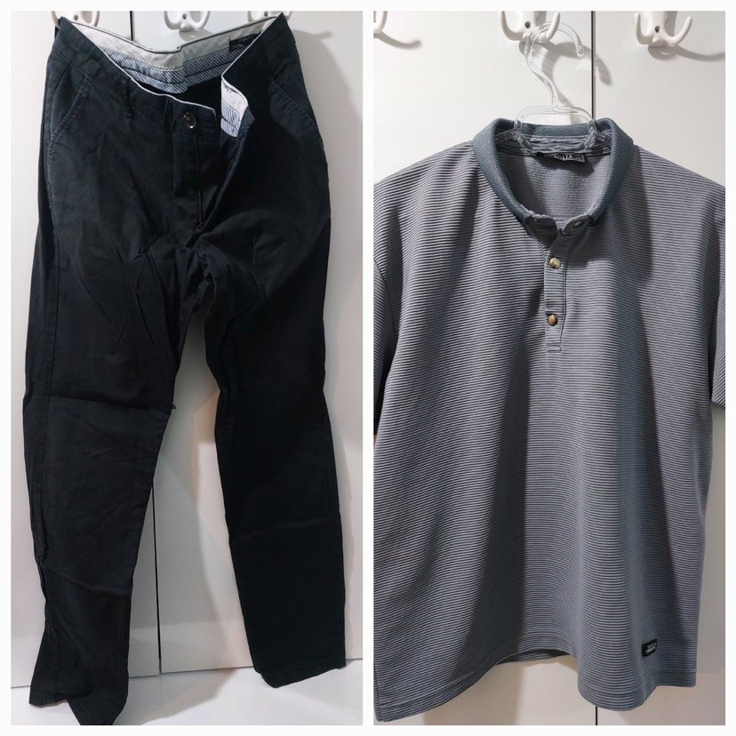 • Erkek Keten Pantolon • Defacto 33/30 Siyah • Pantolon boyu 100 cm • Paça genişliği 18 cm • Bel genişliği 46 cm • Polo yaka tişört hediye..